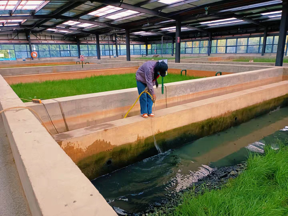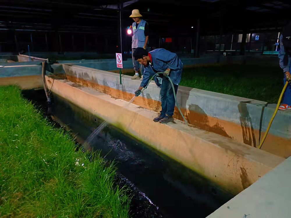 為了使污水處理系統(tǒng)正常運(yùn)行及出水水質(zhì)達(dá)標(biāo)排放,2021年10月16日,扎囊縣污水處理廠工作人員利用周末時(shí)間加班加點(diǎn)清洗室內(nèi)人工濕地池子周邊青苔、紫外消毒燈及巴士計(jì)量槽等。如不及時(shí)清洗青苔,青苔腐爛后會(huì)引起水質(zhì)發(fā)黑、發(fā)臭,氨態(tài)氮含量超標(biāo),水體中溶解氧含量偏低;不僅會(huì)影響水生動(dòng)物的色澤,而且會(huì)誘發(fā)水腫病等各類疾病。工作人員勤沖刷沖洗,確保水質(zhì)達(dá)標(biāo)排放,白天晚上的加班加點(diǎn),保質(zhì)保量的完成了工作,為當(dāng)?shù)厝罕娞峁┝烁蓛?、整潔的衛(wèi)生環(huán)境。