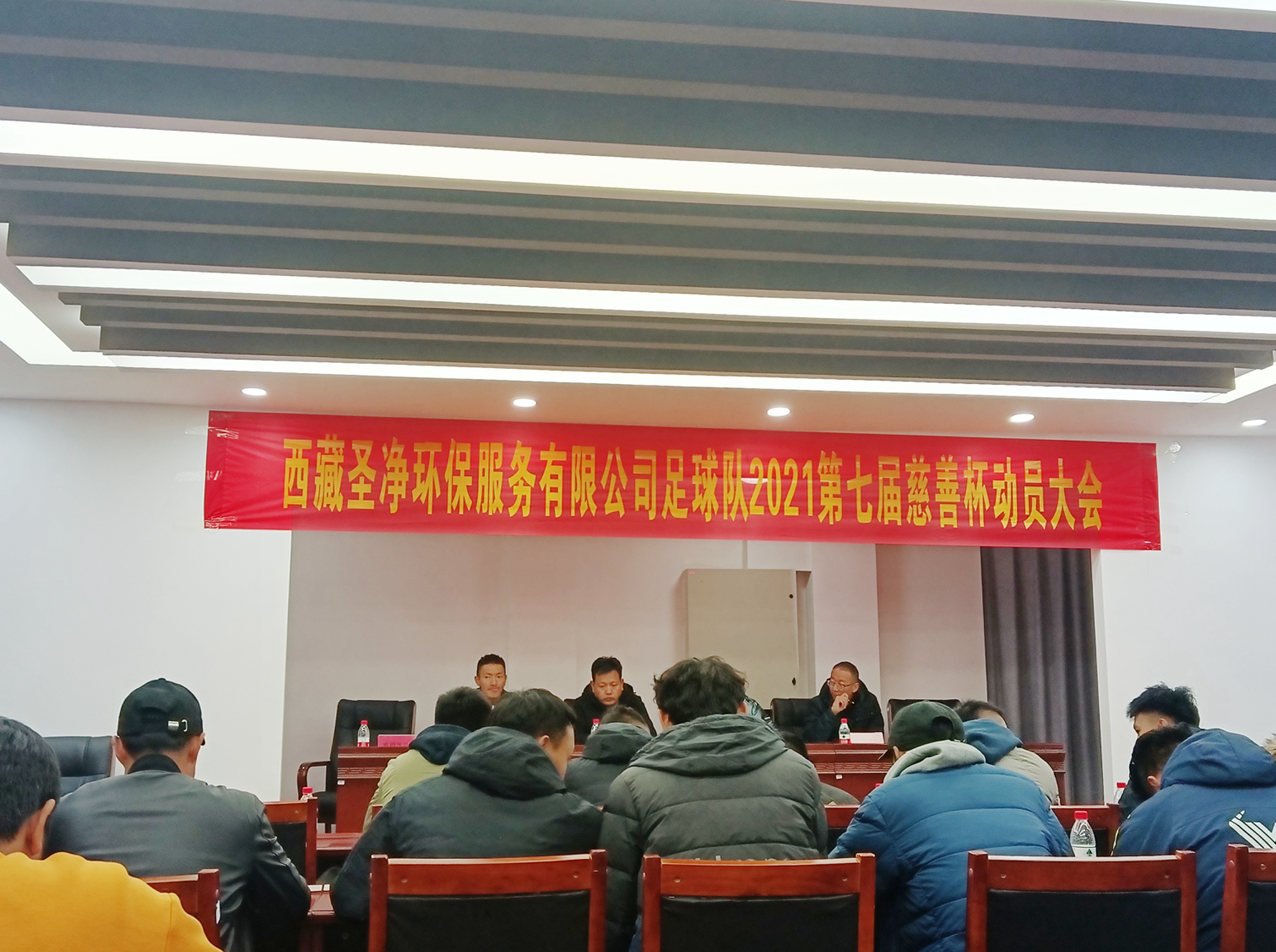 為了迎戰(zhàn)拉薩市第七屆慈善杯足球聯(lián)賽,全方位做好賽前準(zhǔn)備,鼓舞球員們的士氣,增強(qiáng)球員們的信心,西藏圣凈環(huán)保服務(wù)有限公司于2021年11月19日19:30分在藏?zé)嶂新穱身?xiàng)目管理有限公司四樓會議室召開賽前動員大會。出席本次會議的有總經(jīng)理達(dá)瓦、副總經(jīng)理兼商務(wù)部經(jīng)理次仁、副總經(jīng)理尼瑪次仁和球隊(duì)教練,列席人員有所有球隊(duì)成員和公司代表員工。會議由副總經(jīng)理尼瑪次仁主持,首先副總經(jīng)理尼瑪次仁對球隊(duì)成立至今公司各項(xiàng)支持及付出做了總結(jié)講話。然后,球隊(duì)教練講解了一些參加比賽時安全隱患的措施。球隊(duì)成員代表承諾努力比賽,爭取取得名次,用最佳成績向圣凈環(huán)保公司報喜。隨后,總經(jīng)理達(dá)瓦號召球隊(duì)所有成員秉承友誼第一、比賽第二的原則,服從裁判,尊重對手。最后,公司副總經(jīng)理兼商務(wù)部經(jīng)理次仁作了動員講話,鼓勵球員銳意進(jìn)取,奮發(fā)圖強(qiáng),再創(chuàng)佳績。大會歷時一個多小時,在球員相商戰(zhàn)術(shù)和相互鼓勵中拉下了序幕。通過此次動員大會,所有參賽成員一定會更加重視、全身心的投入到本次比賽中。我們也堅(jiān)信,在即將到來的慈善杯足球賽上,足球隊(duì)成員們會團(tuán)結(jié)一致,共同拼搏,取得優(yōu)異的成績,再創(chuàng)輝煌,為我公司爭取更多的榮譽(yù),讓“圣凈環(huán)保”的名字響亮在足球場上。