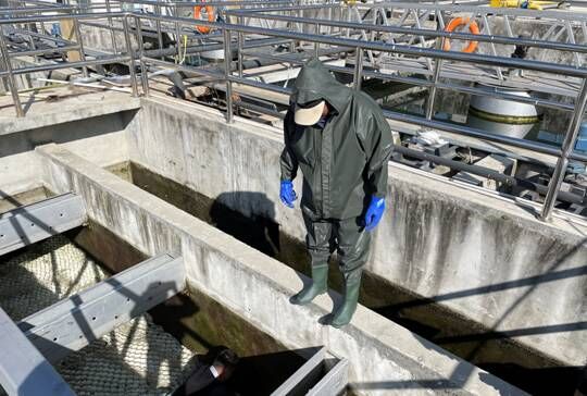 為避免池底及八字口淤泥過(guò)多影響出水水質(zhì),11月17日,吉隆鎮(zhèn)污水處理廠安排工作人員采用人工清洗的方法對(duì)廠內(nèi)的污水池進(jìn)行徹底的清洗。工作人員以高壓水槍和人工洗刷等方式清除二沉池、斜管沉淀池及出水口等地方的青苔及淤泥,沖洗后的污水通過(guò)排空口排到廢水池,進(jìn)行二次處理,污水池及時(shí)清洗很大程度上能避免出現(xiàn)二沉池污泥上浮、藻類生長(zhǎng)等問(wèn)題。此次清洗池子既提高了出水水質(zhì),又排除了池子漏水等潛在危險(xiǎn)。沖洗完的污水通過(guò)調(diào)節(jié)池再一次回流到生化池進(jìn)行二次生化處理,使得廠區(qū)所有污水得到了完善的處理。
