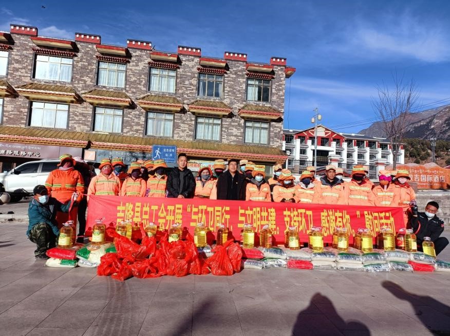 12月3日,吉隆縣總工會(huì)在吉隆鎮(zhèn)廣場(chǎng)組織開(kāi)展了“與環(huán)衛(wèi)同行、與文明共建、支持環(huán)衛(wèi)、感謝有你”慰問(wèn)一線(xiàn)環(huán)衛(wèi)工人活動(dòng)。吉隆縣環(huán)衛(wèi)項(xiàng)目部負(fù)責(zé)人積極協(xié)助縣總工會(huì),認(rèn)真組織環(huán)衛(wèi)工人,讓大家有序地領(lǐng)取大米、菜油、羊頭等慰問(wèn)物品。