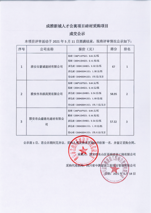 雅安市名山區(qū)茶城建設工程有限公司及子公司審查 采購詢價結果公告...