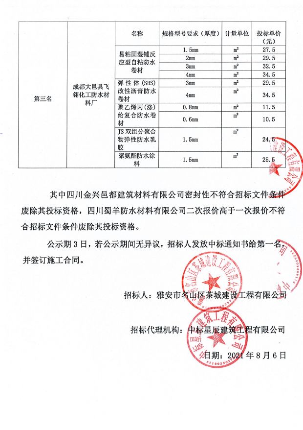 雅安市名山區(qū)茶城建設工程有限公司及子公司審查 采購詢價結果公告...