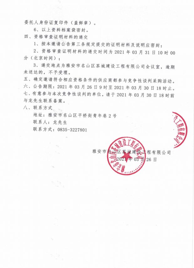 雅安市名山區(qū)茶城建設(shè)工程有限公司及子公司審查 采購詢價(jià)結(jié)果公告...
