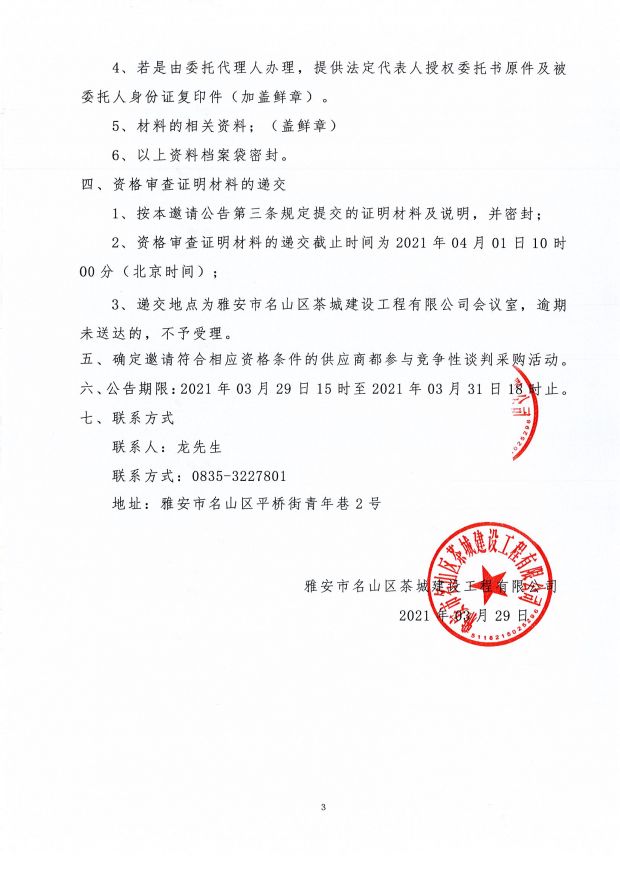 雅安市名山區(qū)茶城建設(shè)工程有限公司及子公司審查 采購詢價結(jié)果公告...