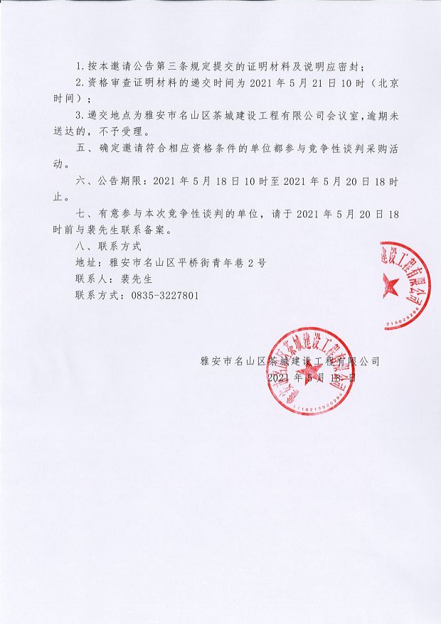 雅安市名山區(qū)茶城建設(shè)工程有限公司及子公司審查 采購(gòu)詢價(jià)結(jié)果公告...